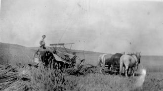 Jens Christensen, Cutting Grain with Binder, circa 1935